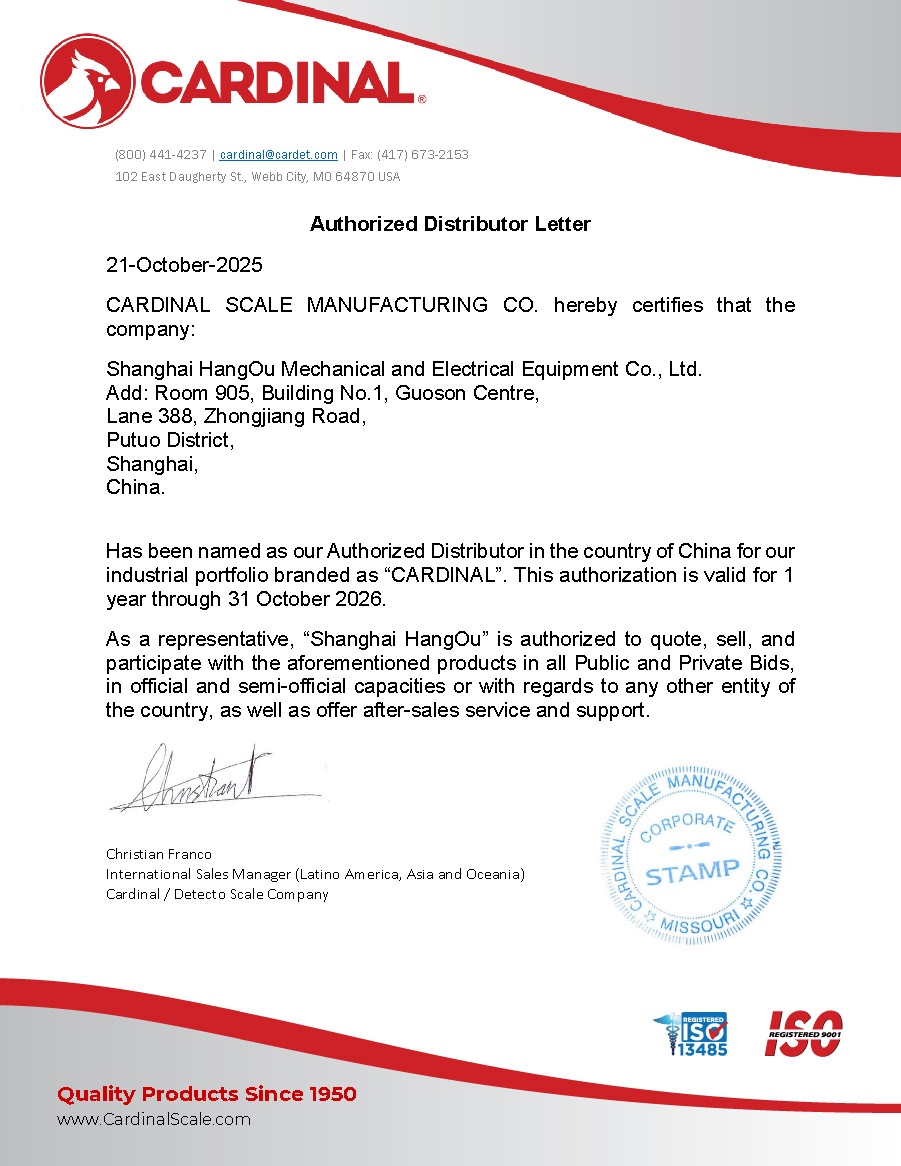 2025年美国CARDINAL工厂授权上海航欧中国区代理CARDINAL称重传感器